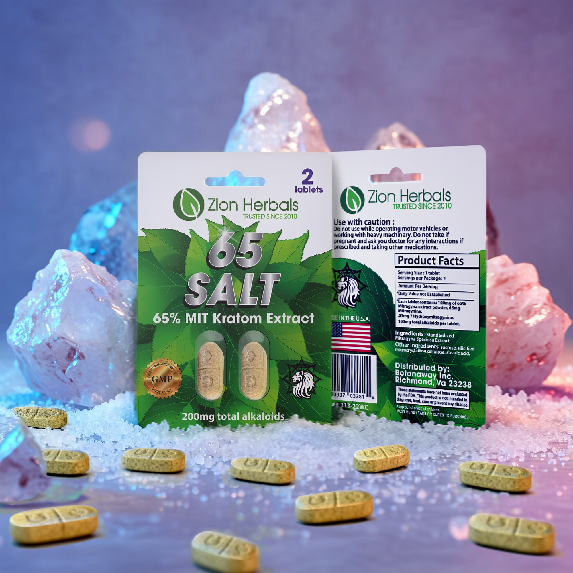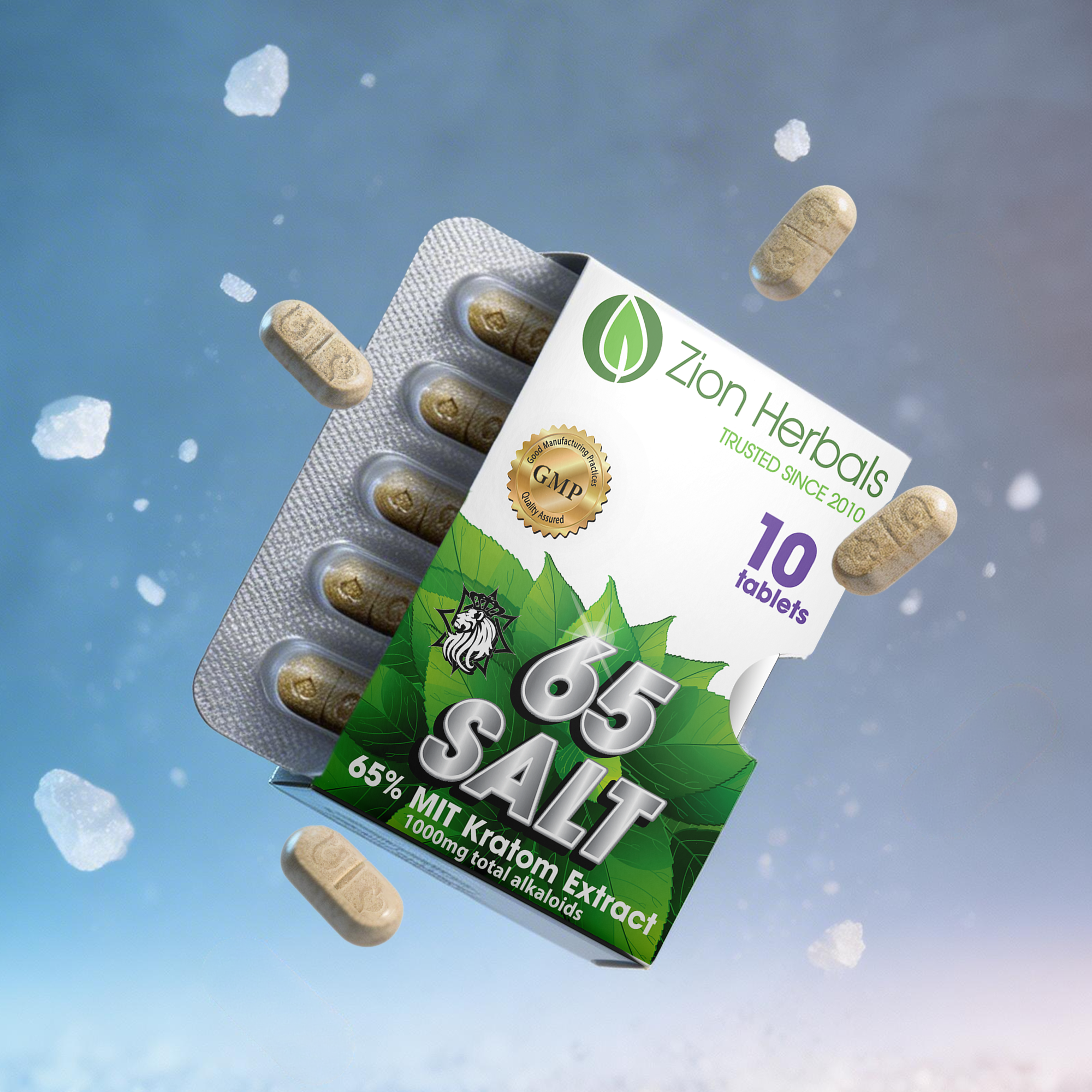 Zion Herbals 65 Salt 65% Extract Tablets are made using our 65% SALT BASED KRATOM EXTRACT. No longer a full spectrum extract, there is a significant reduction in the lesser-known alkaloids found in natural Kratom with a focus on Mitragynine. The salt-base has been observed to produce quicker effects.