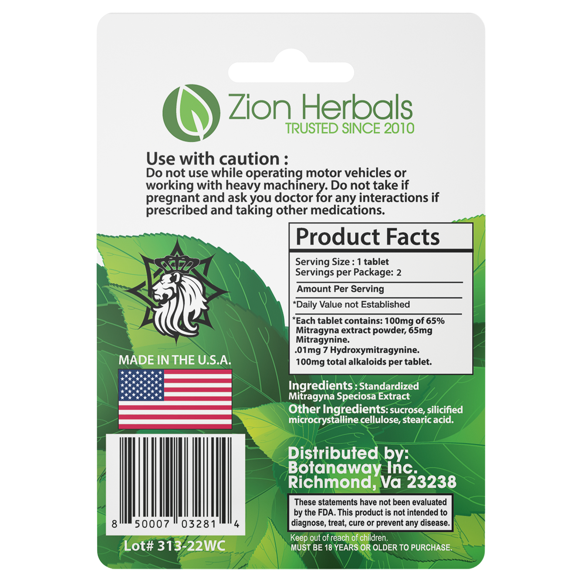These statements have not been evaluated by US Food & Drug Administration.This product is not intended to diagnose, treat, cure, or prevent any disease. MUST BE 21 YEARS OR OLDER TO PURCHASE KRATOM.