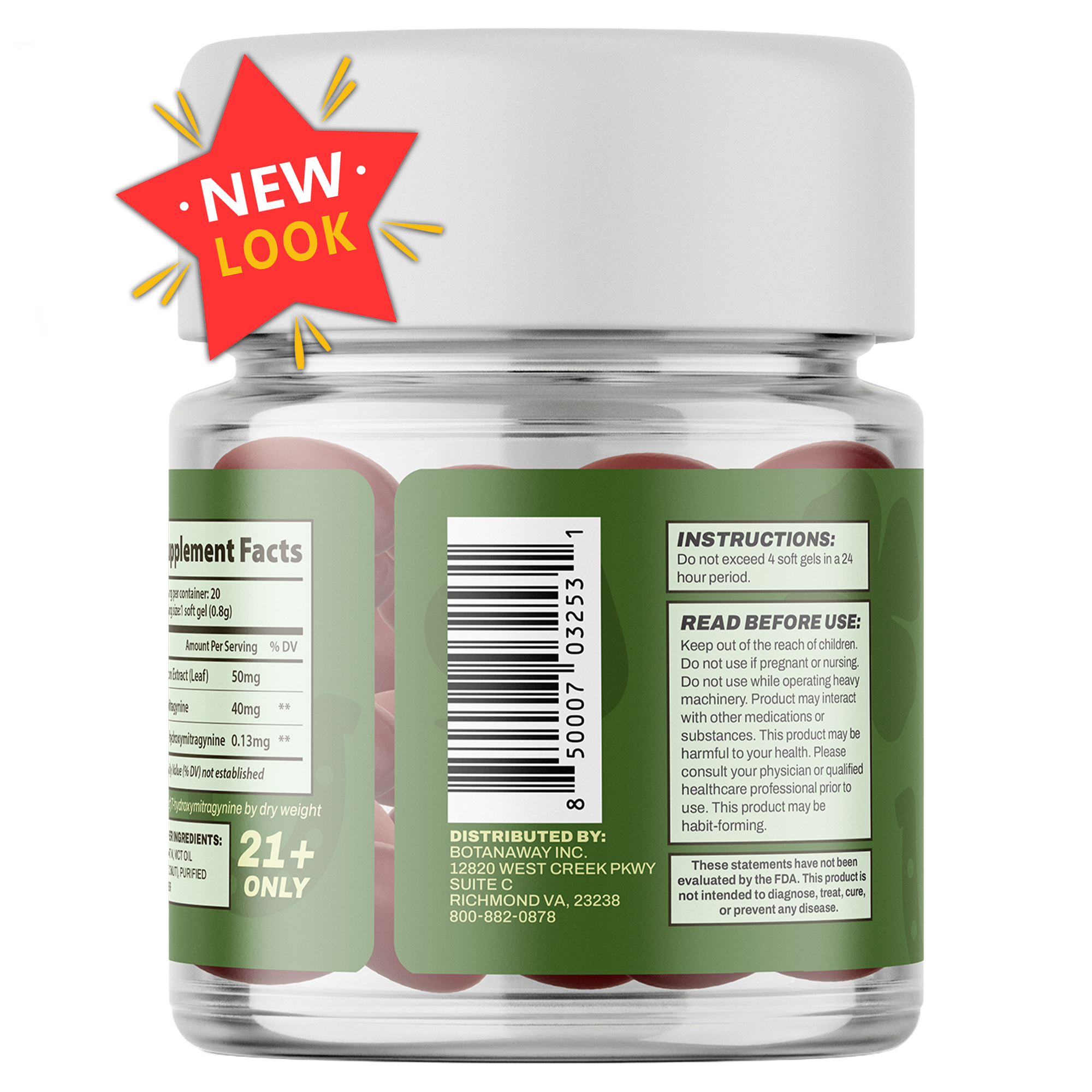 Each soft gel contains approximately 40mg of mitragynine, offering a compact and portable format that is easy to carry and use. The liquid-filled design sets kratom soft gels apart from traditional capsules, providing a smooth and convenient alternative within the kratom extract category.