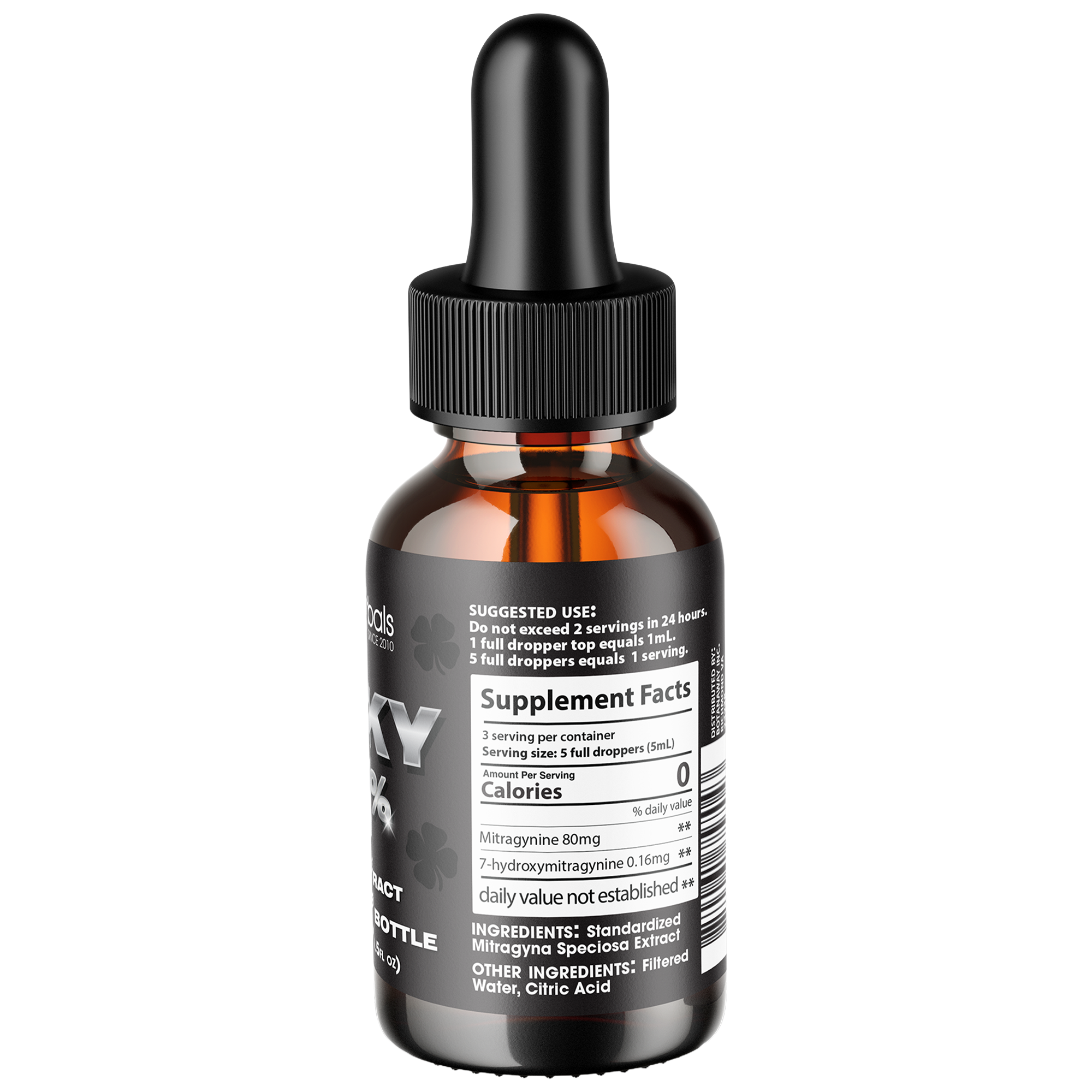 Ingredients: Filtered Water, Standardized Mitragyna Speciosa Extract, Citric Acid