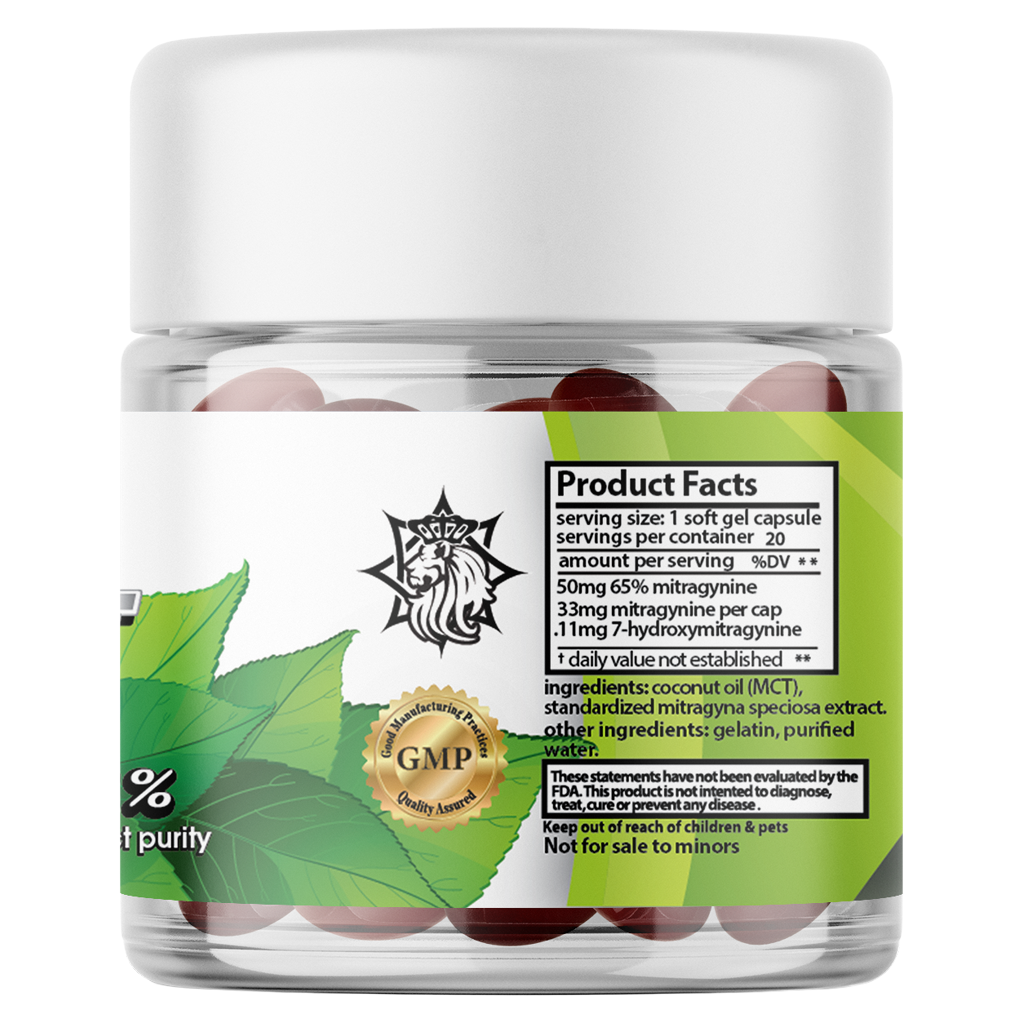 Our 65Salt Kratom Soft Gels 20ct are made from our premier formula using our 65% Mitragynine Extract powder. in a soluble liquid soft gel. Each gel contains 50mg of the Mitagynine Alkaloid.